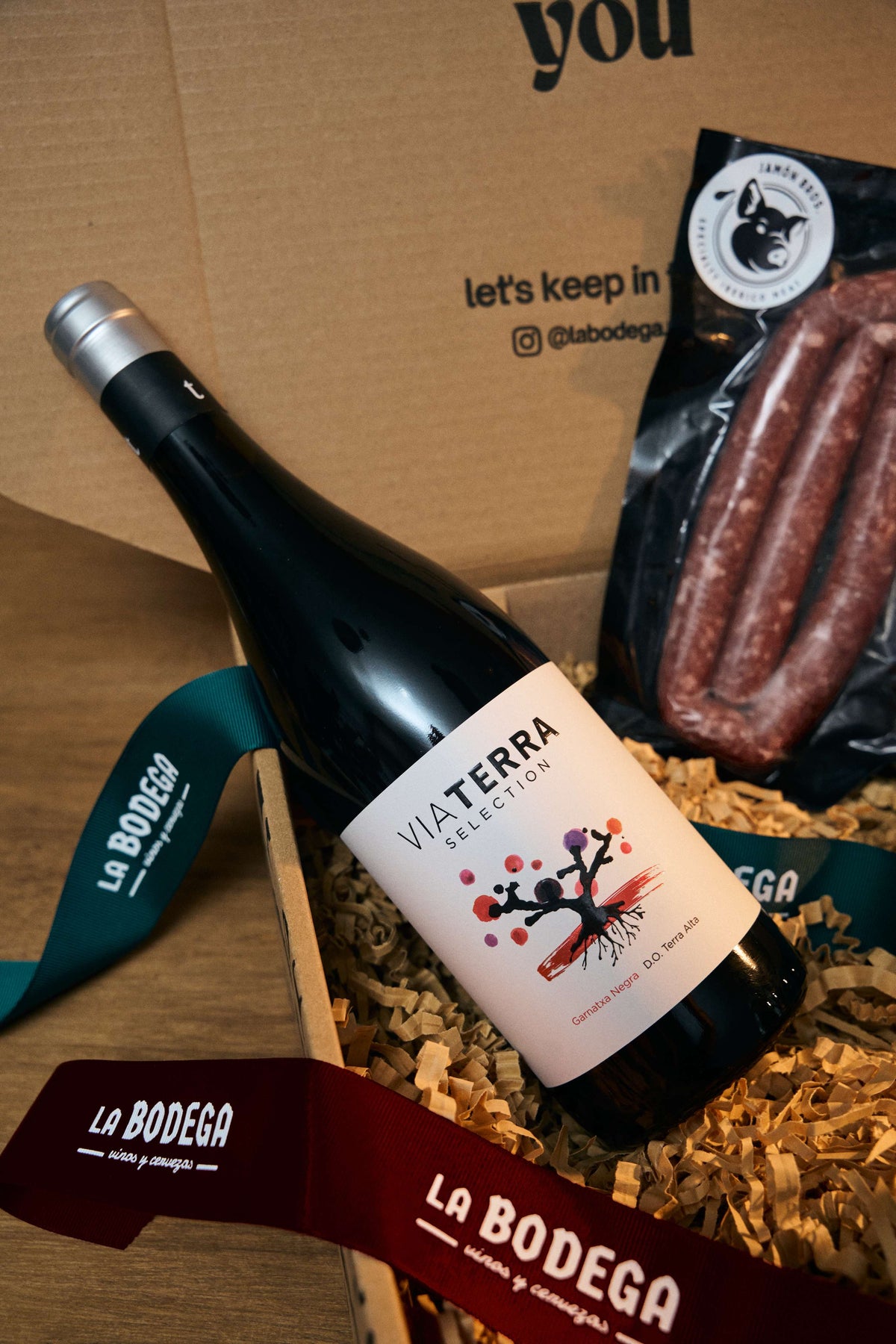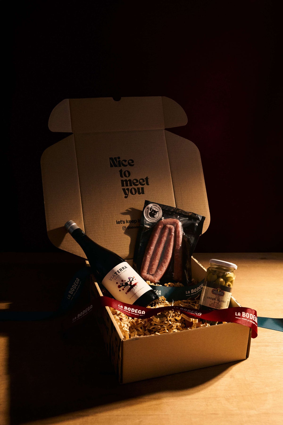Set includes: Via Terra Negre, Pitted Green Olives, Jamon Brothers Butifarra (250g)